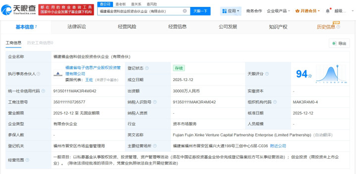 每经AI快讯,天眼查工商信息显示,近日,福建福金信科创业投资合伙企业(有限合伙)成立直播自慰,执行事务合伙人为福建省电子信息产业股权投资管理有限公司,资源交流群名出资额3亿元人民币,经营范围包括创业投资,以私募基金从事股权投资、投资管理、资产管理等活动。合伙人信息显示,该合伙企业由福建省金投金鹏创业投资基金合伙企业(有限合伙)、星网锐捷(002396)、合力泰(002217)等共同出资。