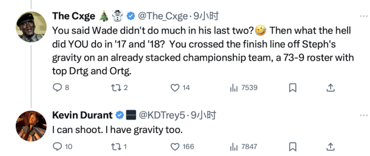 网友评论:“你说韦德后面两冠没出多少力?那你自己在2017和2018年又干了些什么名堂?你不过是借着库里的牵制力,在一支本就星光熠熠的冠军球队里躺赢罢了。”